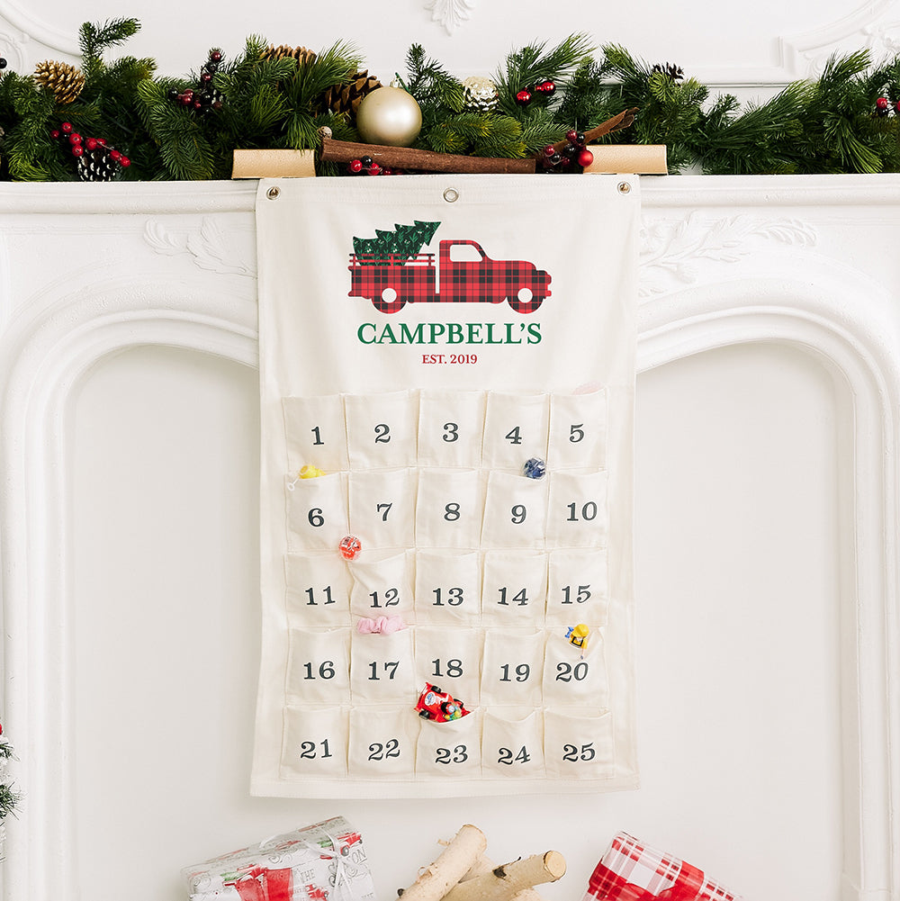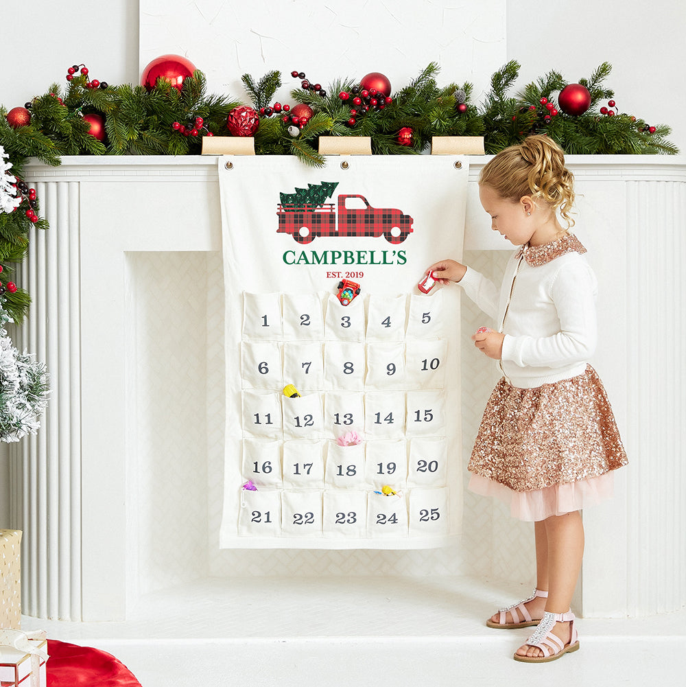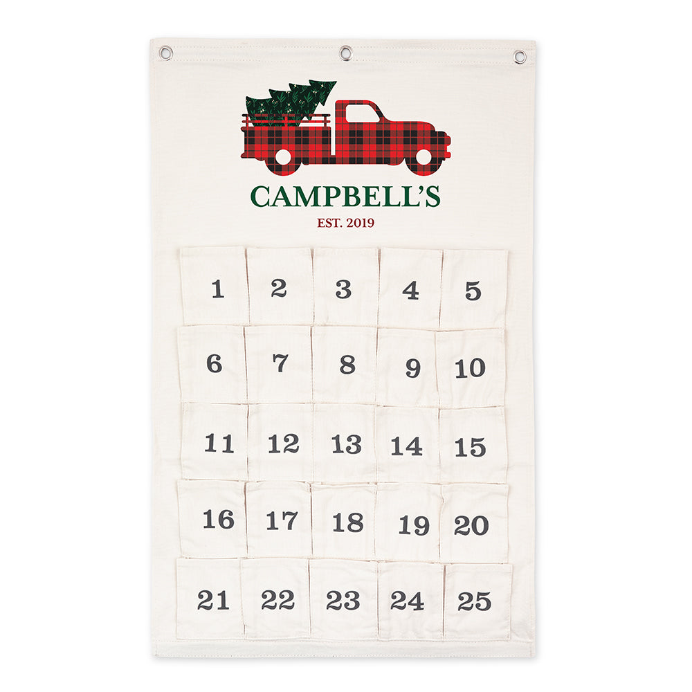 Fill each one of these 25 pockets with surprises and delights! This Custom Printed Fill Your Own Hanging Cloth Advent Calendar features 25 Empty Pockets. Creatively count down the days until Christmas. Not just for kids, adults can even take part in the fun. Customize it and fill your own pockets with 25 little treats, trinkets or create a beverage countdown! The sturdy and elegant canvas fabric is built to hold a variety of goodies, light or heavy. It is even reusable, so you and your family can continue to use it for years to come. The inexpensive fillable advent calendar has two strong grommets, so you can hang and display it in your house. Personalized to suit children, teens, or adults, add a unique tradition to your family and make December even more exciting.